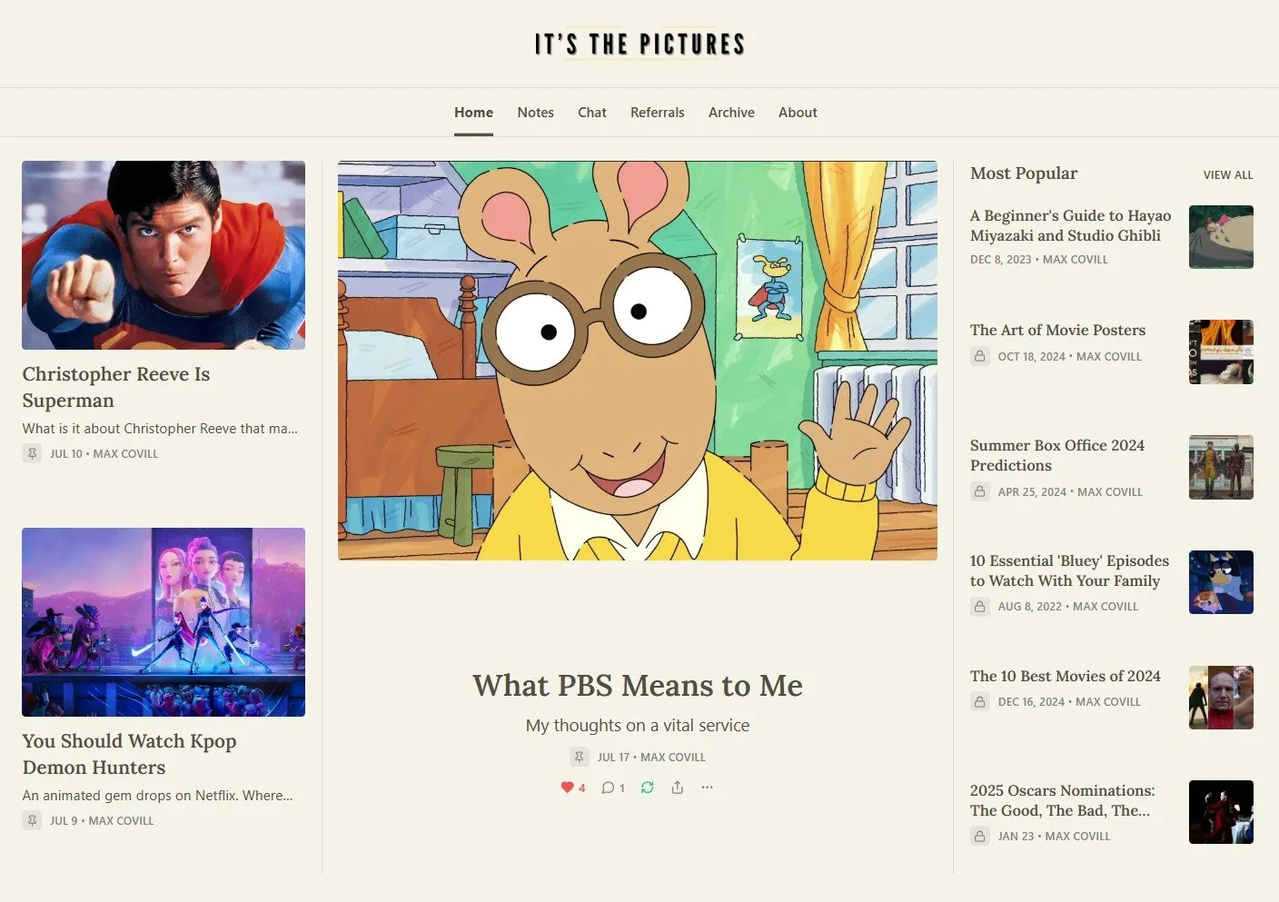 The cover page of the It’s the Pictures newsletter designed in Substack.